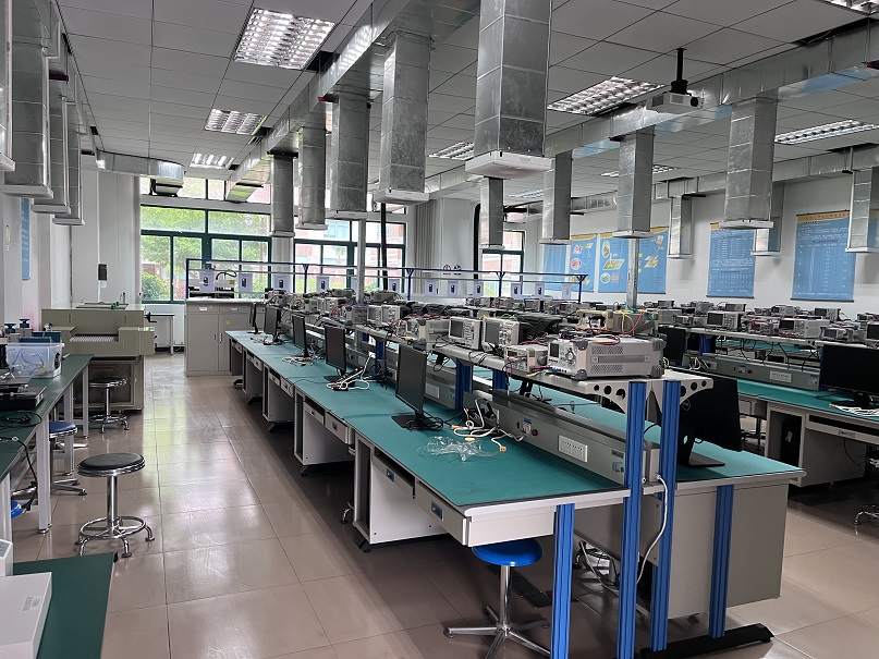 ,承担了全校电子信息类、计算机类、材料类等多个专业的本科实践教学任务。每年面向全校1400多名学生开放,年实验人时数超过5万。平台现有实验室7个,分别位于东校园北实验楼C栋一层(C101、C102、C104)和南校园丰盛堂四层C401,五层(C501、C502、C503),总面积1800多平方米。实验室仪器设备总值1500多万元,配备有信号发生器、示波器、万用表、直流稳压电源等常规电子测试仪器,和电路基础实验箱、模拟电路实验箱、数字电路实验箱、全自动贴片机、回流焊等一批实验设备。